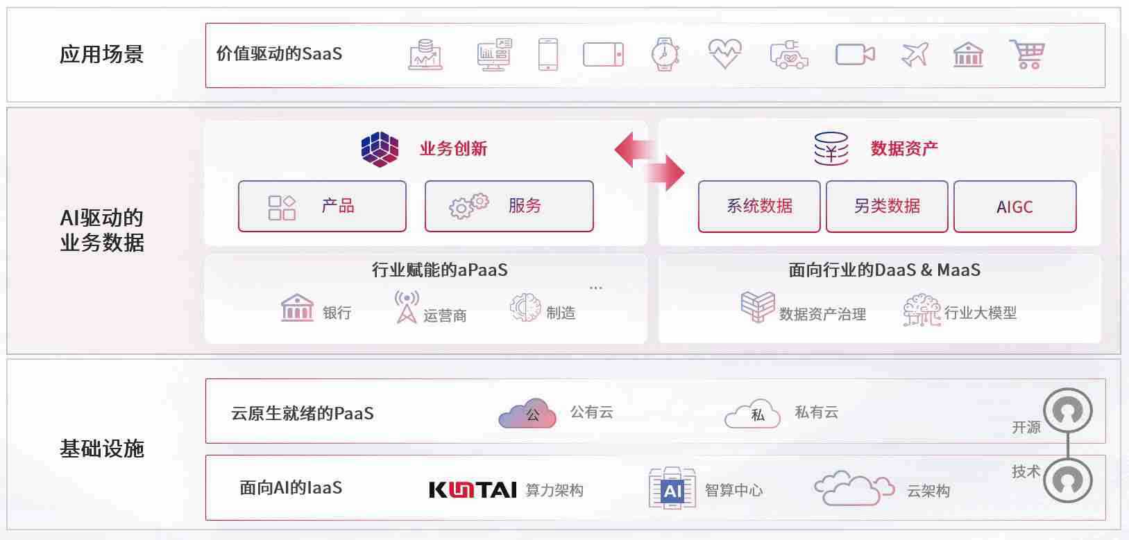 数字时代,,围绕企业数字化转型的关键要素,,PA直营数码开创性的提出数云融合战略和技术体系框架,,,着力在云原生、、、、数字原生、、、、AI原生和信创产业上架构产品和服务能力,,为处在不同数字化转型阶段的快消零售、、汽车、、金融、、、、医疗、、、政企、、、教育、、、运营商等行业客户提供泛在的敏捷IT能力和融合的数据驱动能力,,,,构建跨界融合创新的数字业务场景和新业务模式,,助力企业级客户建立面向未来的核心能力和竞争优势,,,,全面推动社会的数字化、、智能化转型升级。。。。
