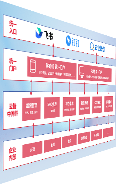 对协作平台提供支持服务,,,,支持企业应用与协作平台对接,,,包含组织同步、、、消息集成、、、、待办集成等。。。支持目前主流的协作平台:钉钉、、、企微和飞书。。