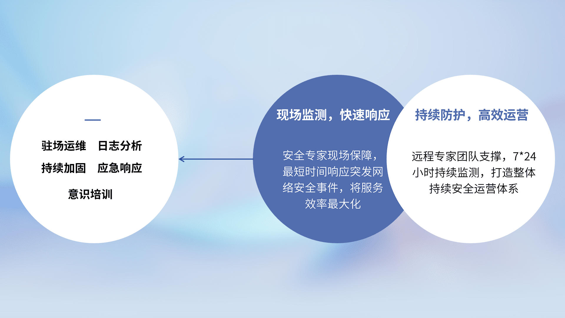 7X24小时持续监测安全事件,保持安全策略有效性,降低资产脆弱性风险,,精准拦截黑客攻击,,减少被黑客利用的机会,,第一时间遏制,,,降低损失。。。。